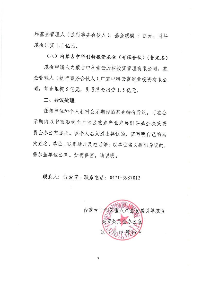 關(guān)于內(nèi)蒙古自治區(qū)重點產(chǎn)業(yè)發(fā)展引導(dǎo)基金參股基金的公示