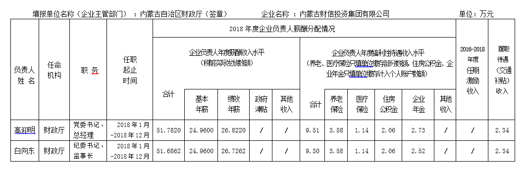 2018年度內(nèi)蒙古自治區(qū)直屬國有企業(yè)負(fù)責(zé)人薪酬信息公開披露表