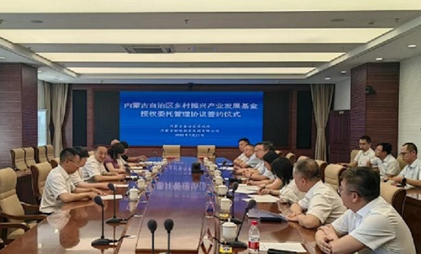 7月21日,財信集團與自治區(qū)農(nóng)牧廳舉行鄉(xiāng)村振興產(chǎn)業(yè)發(fā)展基金授權(quán)委托管理協(xié)議簽約儀式,雙方領(lǐng)導共同在委托管理協(xié)議上簽約?;鸸芾砣藘?nèi)蒙古蒙新國創(chuàng)私募基金管理有限公司、托管銀行興業(yè)銀行呼和浩特分行等相關(guān)單位代表見證簽約。