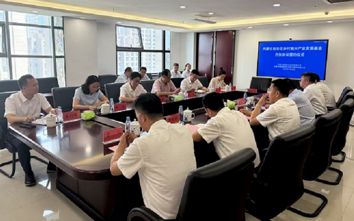 7月30日,自治區(qū)鄉(xiāng)村振興產(chǎn)業(yè)發(fā)展基金合伙協(xié)議正式簽約。集團(tuán)黨委書記、董事長李俊林與基金管理人內(nèi)蒙古蒙新國創(chuàng)私募基金管理有限公司董事長王利永在合伙協(xié)議上簽字。自治區(qū)農(nóng)牧廳、內(nèi)蒙古國有資本運營公司、興業(yè)銀行呼和浩特分行相關(guān)人員出席簽約儀式。